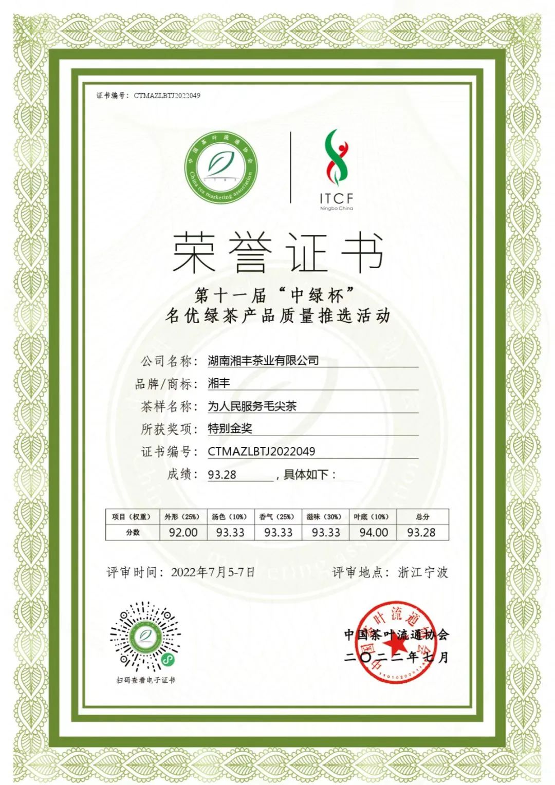 “茶祖神農(nóng)杯”名優(yōu)茶金獎(jiǎng)