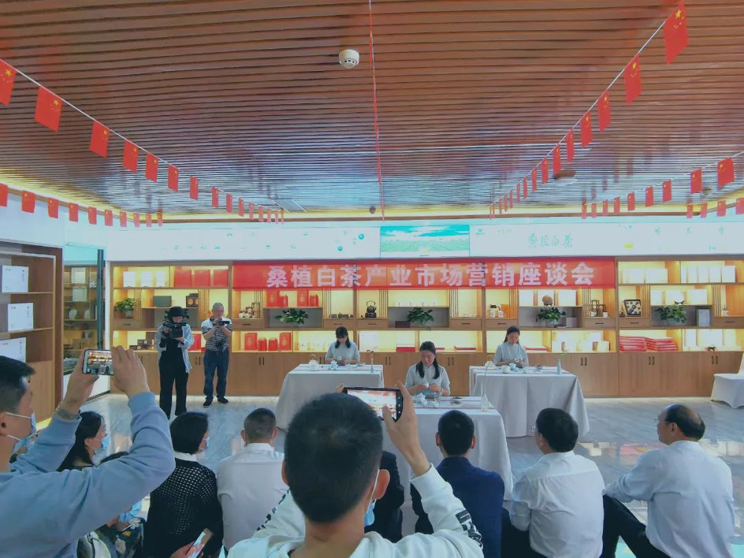 活動最后,桑植縣縣長梁高武與各位桑植白茶產業從業者一道開展座談交流會,充分聽取了白茶業界的意見和建議。他表示,桑植白茶是桑植縣鄉村振興的主導產業,是張家界旅游特產的一張名片,我們桑植有其他產茶縣不具備的先天優勢,“不是娘夸女兒好,確實女兒長得乖”。大家要有信心將桑植白茶市場做好,把桑植白茶文化宣傳好。白茶市場在全國發展潛力巨大,我們要積極加入到這個發展過程中,將桑植白茶這張“湘茶名片”推向全國。