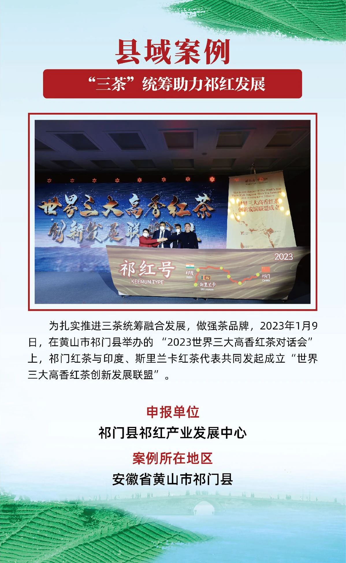 本屆大會以“茶鄉禮敬 非遺致遠”為主題,將“非遺”與茶鄉旅游的融合發展作為此次大會的重點,通過發布“中國茶技·憶之非遺”為主題的茶鄉旅游精品線路、“多彩茶鄉—特色魅力茶鄉”、全國“三茶”統籌發展典型案例以及主旨演講等環節,推動茶鄉旅游高質量發展,促進茶文化保護與傳承。全國“三茶”統籌發展典型案例(縣域案例、項目案例各10個)