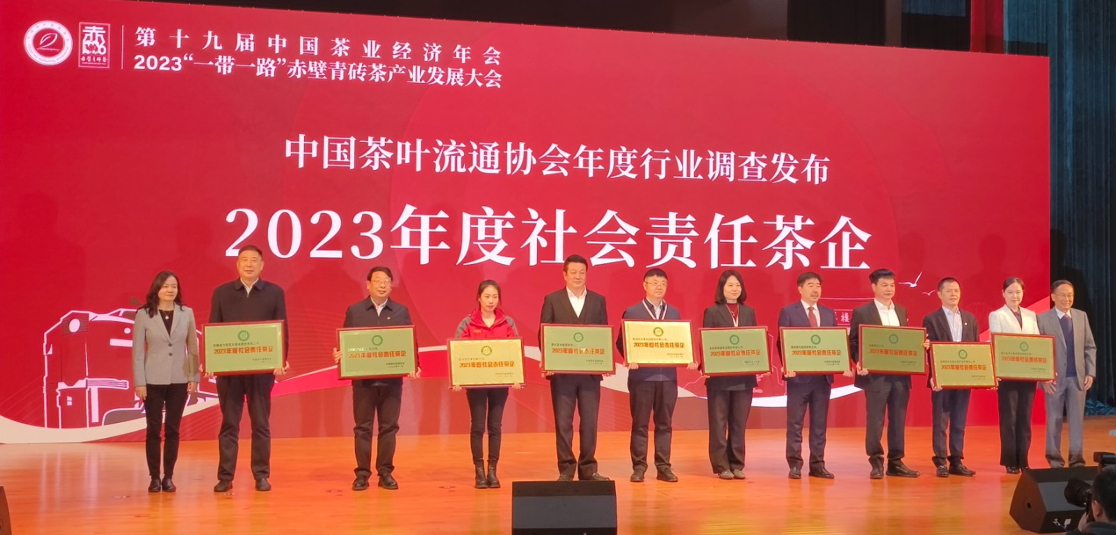 11月18日,第十九屆中國茶業經濟年會暨2023“一帶一路”赤壁青磚茶產業發展大會在湖北省赤壁市舉行。湘豐茶業集團有限公司(以下簡稱“湘豐茶業集團”)榮獲“2023年度社會責任茶企”、“2023年度重點茶企”稱號!湘豐茶業集團董事 CEO李中欽博士受邀出席大會,代表公司登臺領獎。