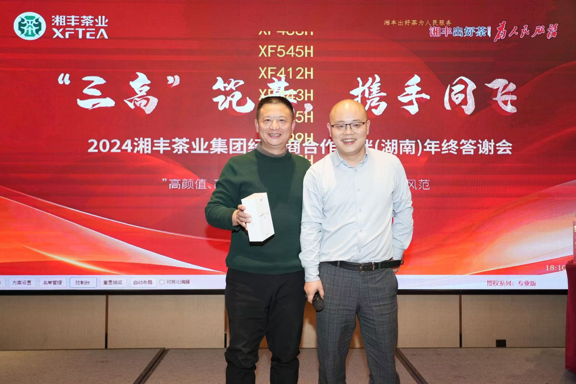 “三高”筑基,攜手同飛!12月14日下午,“2024湘豐茶業(yè)集團經(jīng)銷商合作伙伴(湖南)年終答謝會”在熙林國際會議中心舉行。湘豐茶業(yè)集團湖南各地經(jīng)銷商歡聚一堂,共敘情誼,共謀發(fā)展!湘豐茶業(yè)集團董事長湯程霖,董事、總裁李中欽博士出席了會議。